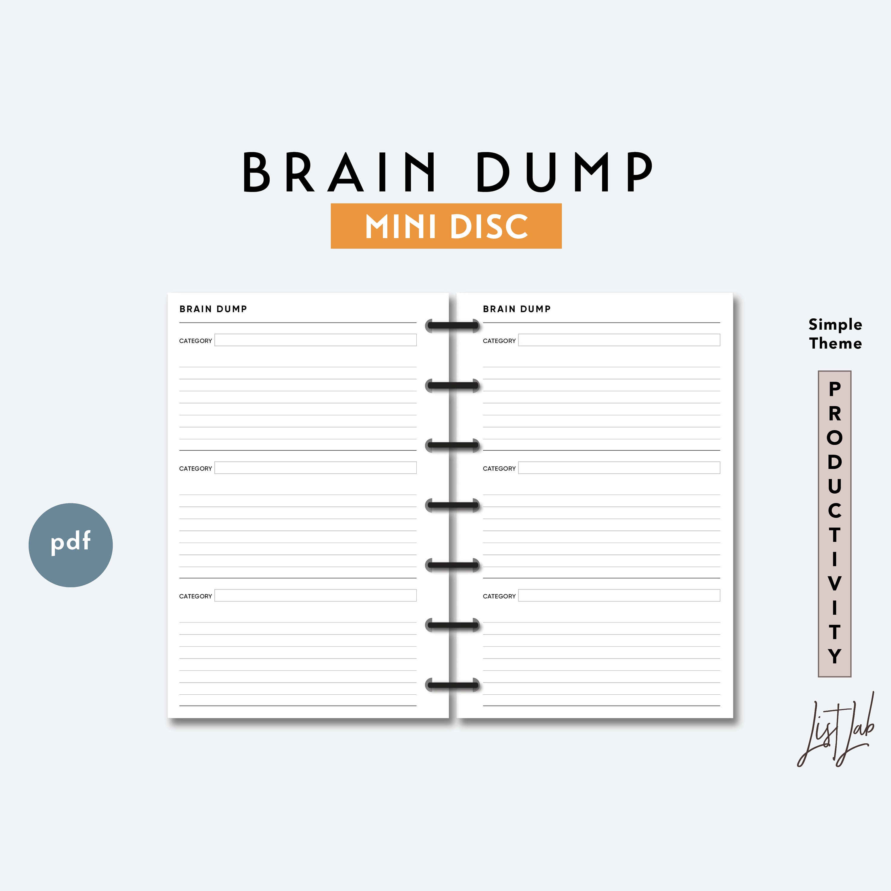 Mini Disc Brain Dump Printable Discbound Planner Insert Pdf Etsy